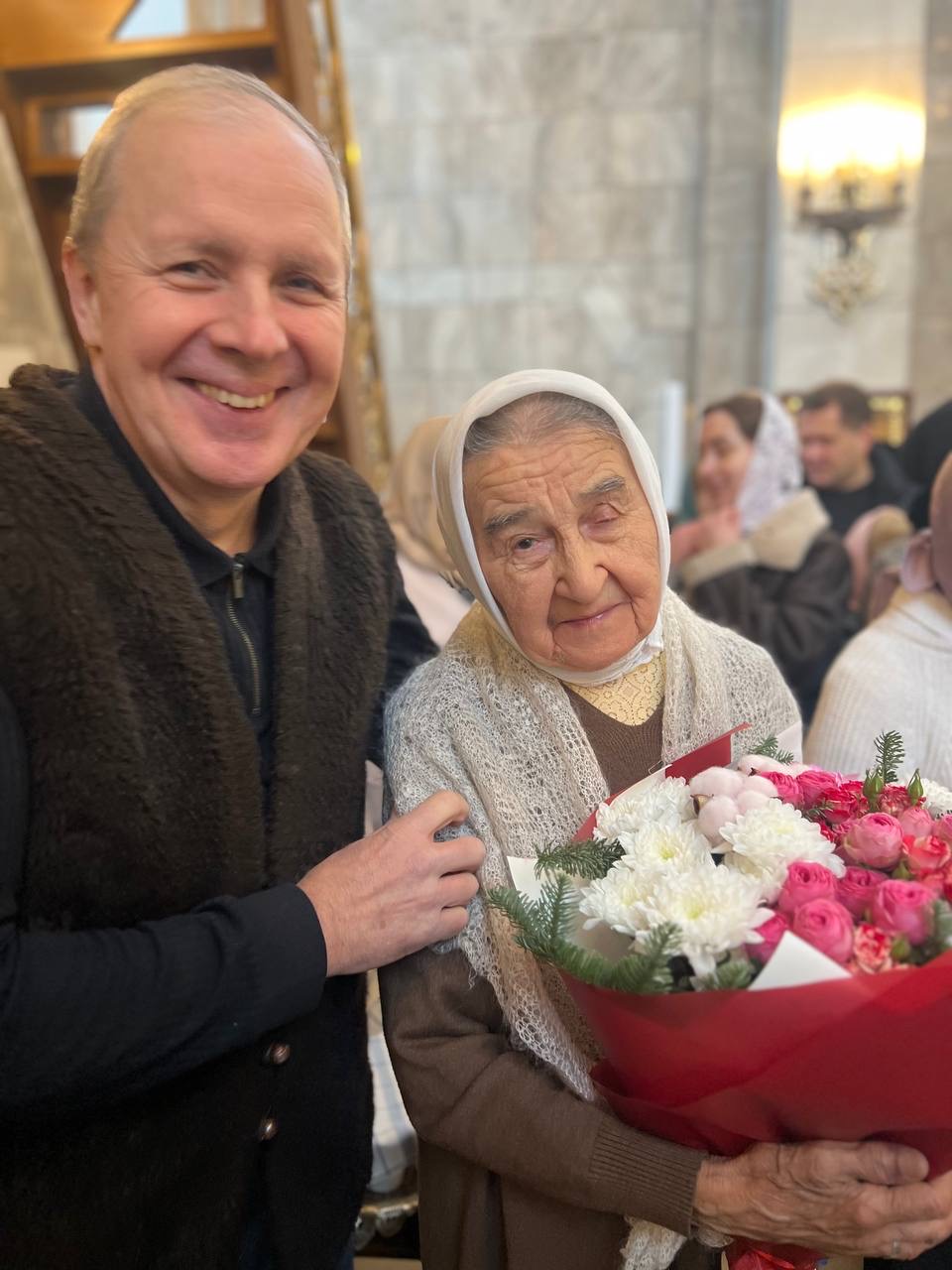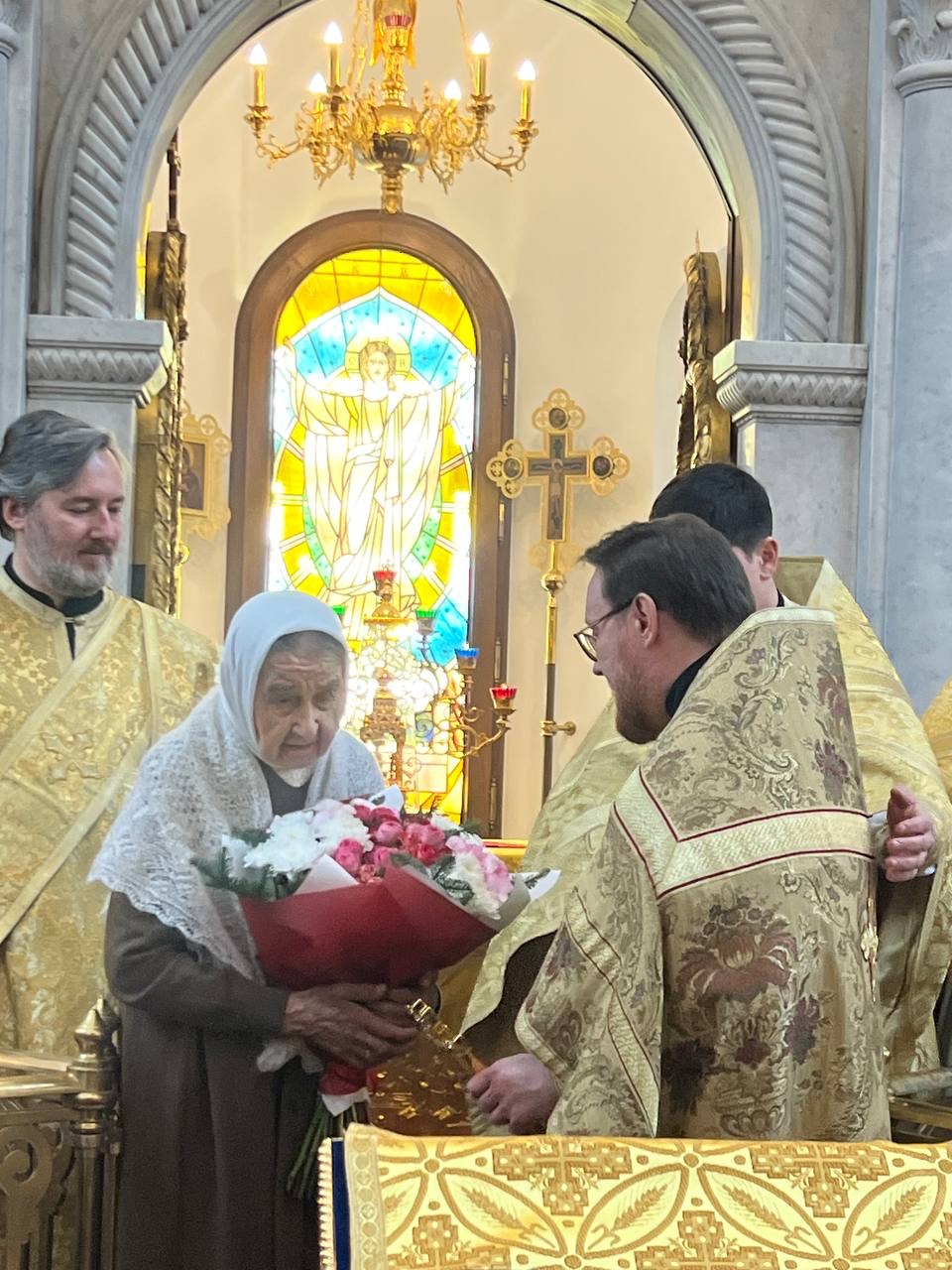 В этот день настоятель храма архимандрит Филарет с духовенством совершили Божественную литургию и молебное пение на Новый год, и вместе с прихожанами поздравили Людмилу Гордеевну со знаменательной датой в ее жизни.